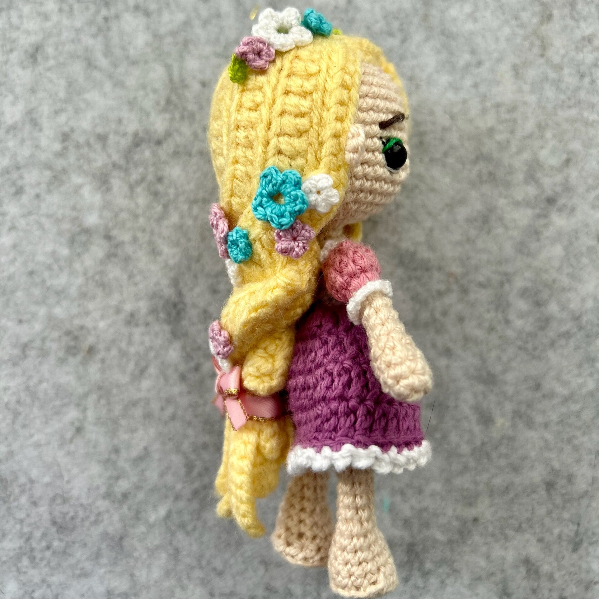 Poupée au crochet – Inspirée d’une princesse rêveuse (style “Raiponce – Disney”)