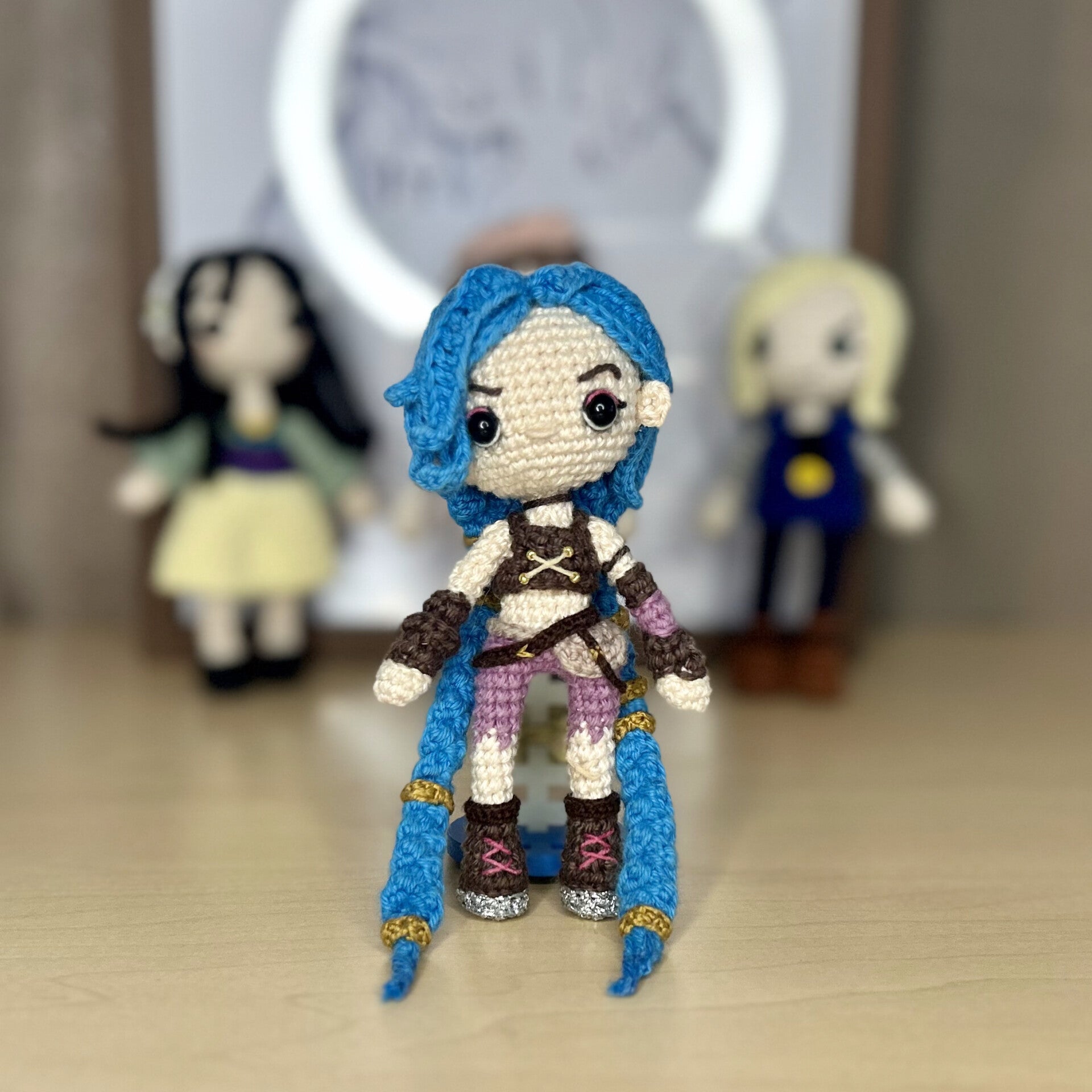 Cette figurine au crochet est inspirée d’un personnage rebelle et explosif bien connu de l’univers Arcane / League of Legends.